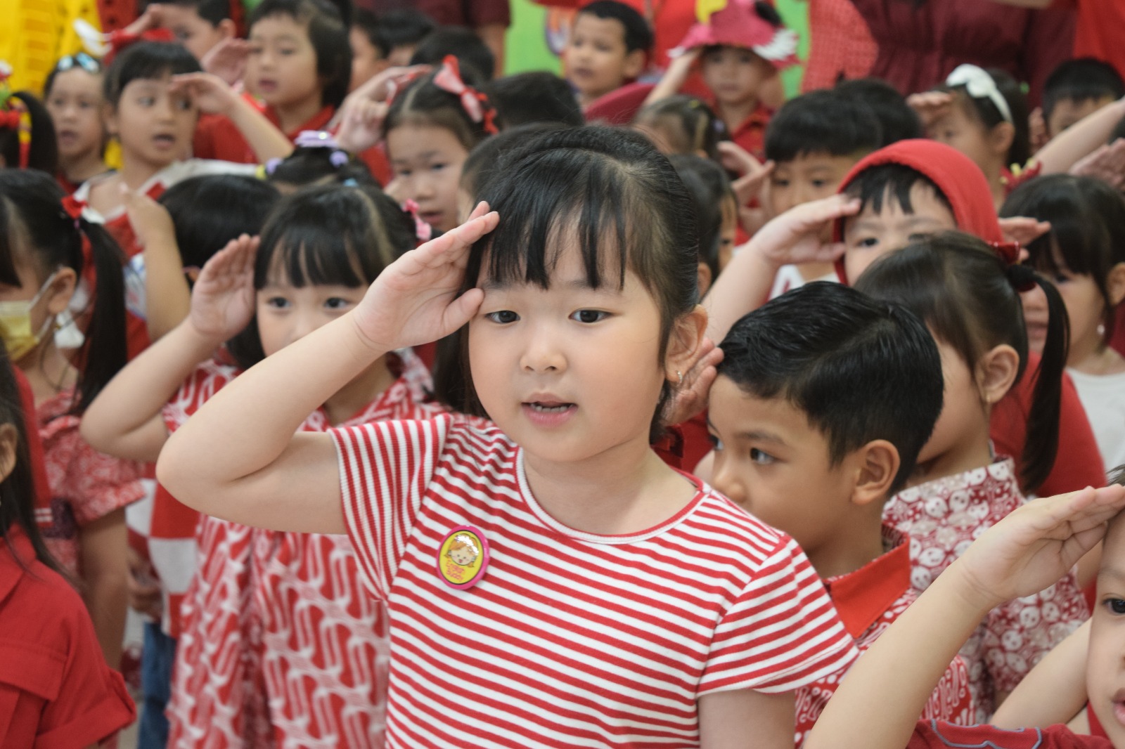 Acara dibuka dengan upacara bersama di aula sekolah. Louis tampil percaya diri sebagai Komandan Upacara, Audrey membacakan teks Pancasila dengan lantang, dan Ms. Lifen, Kepala Sekolah KB-TK Kristen Gloria Kupang Indah sebagai Pembina Upacara. Semua berlangsung khidmat, dan yang paling membanggakan — anak-anak mengikuti upacara dengan tertib.